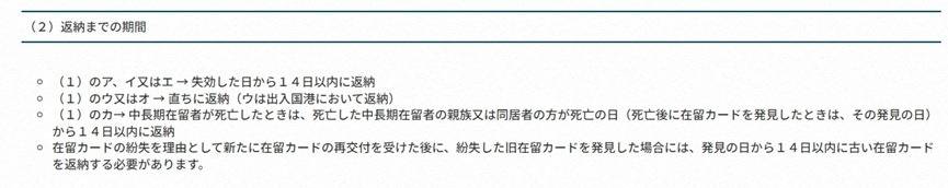 ・在留カードの交付を受けた中長期在留者が中長期在留者でなくなったときは失効した日から14日以内に返納