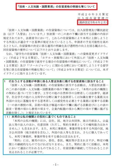 当然だけど、技術・人文知識・国際業務の在留資格(ビザ)を取得しながらも、技術・人文知識・国際業務の在留資格(ビザ)に該当しない業務を行わせていたら入管法違反になるから、話をきちんと詰め、見通しを立てておかないと、会社間の損害賠償問題も含めた色々な問題が発生してしまう、難しい案件だね。