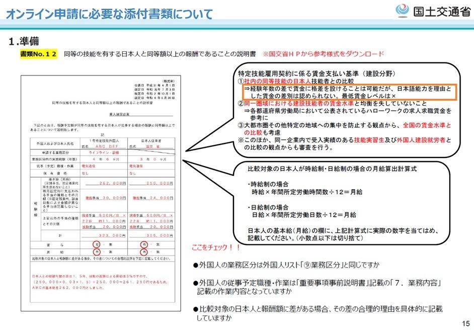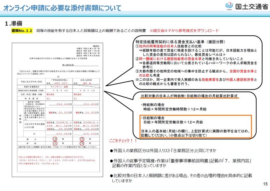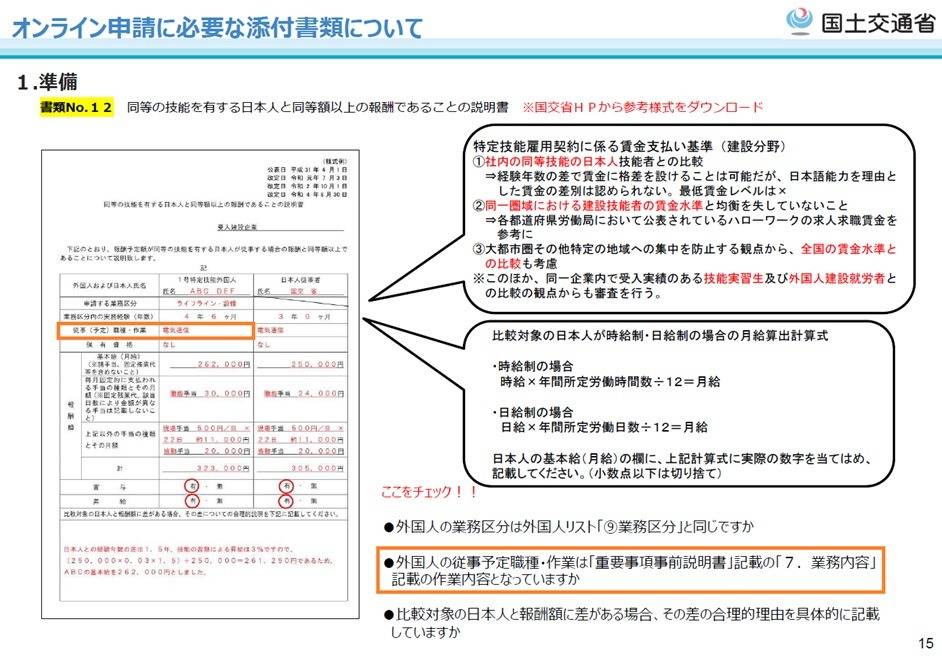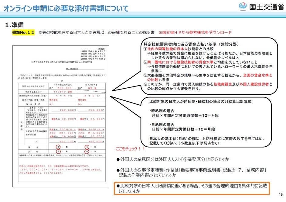 外国人就労管理システム(建設特定技能受入計画)同等技能を有する日本人と同等以上の報酬であることの説明書の記載方法 行政書士葛飾江戸川総合法務事務所