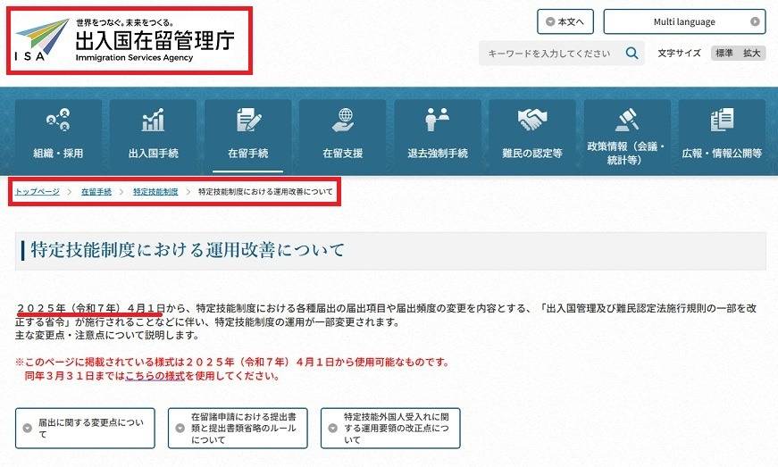 特定技能の新しい書式が2025年4月1日から公開されました 行政書士葛飾江戸川総合法務事務所