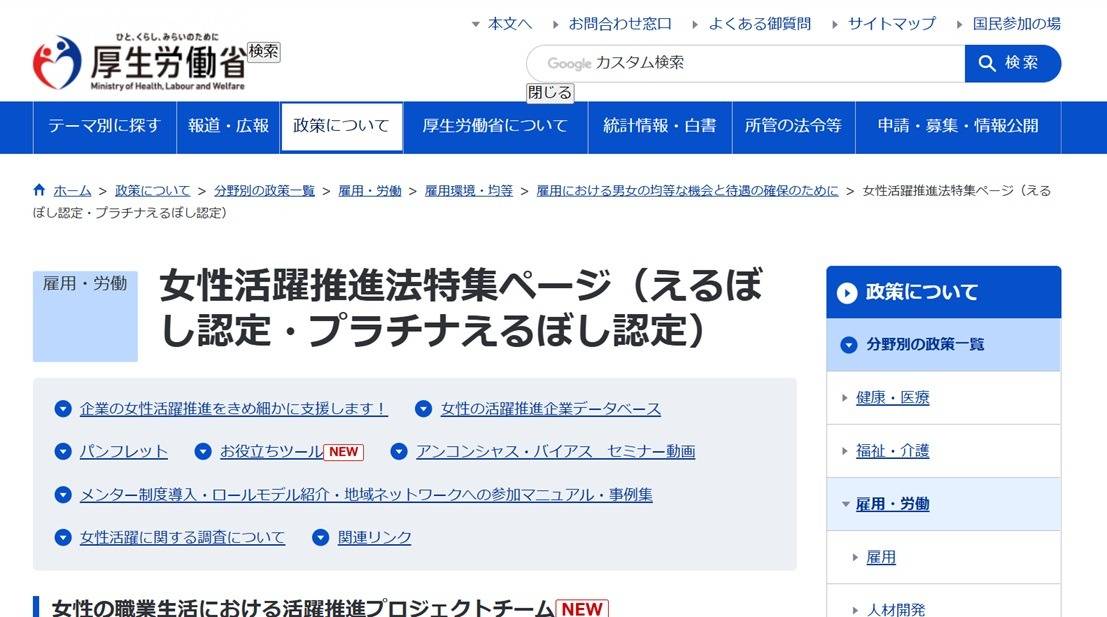 3 えるぼし認定企業、プラチナえるぼし認定企業(厚生労働省)