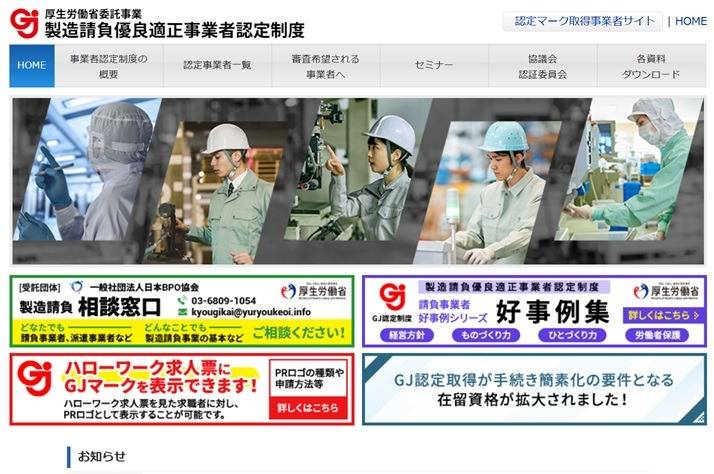 6 製造請負優良適正事業者(GJ認定)(厚生労働省)