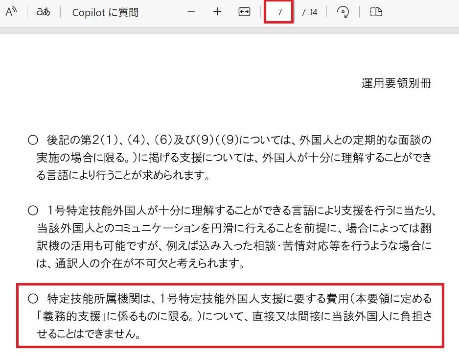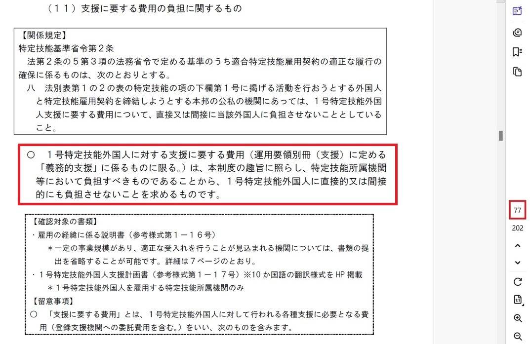 特定技能所属機関は、1号特定技能外国人支援に関する費用(義務的支援に係るものに限る)について、直接又は間接に当該外国人に負担させることはできません。