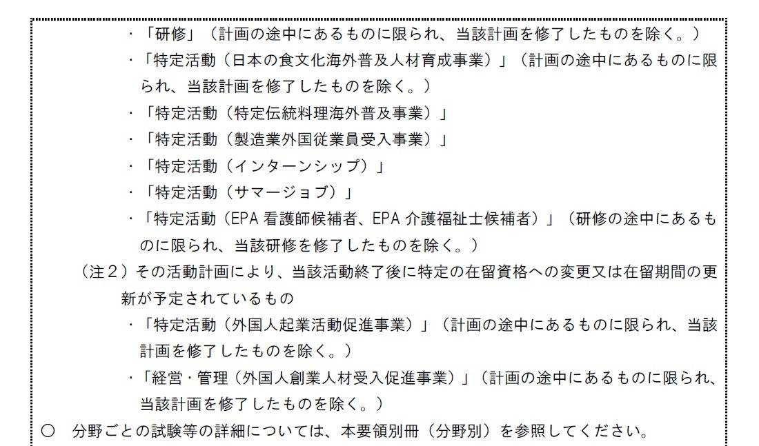 ・「特定活動(日本の食文化海外人材育成事業)」(計画の途中にあるものに限られ、当該計画を修了したものを除く。)