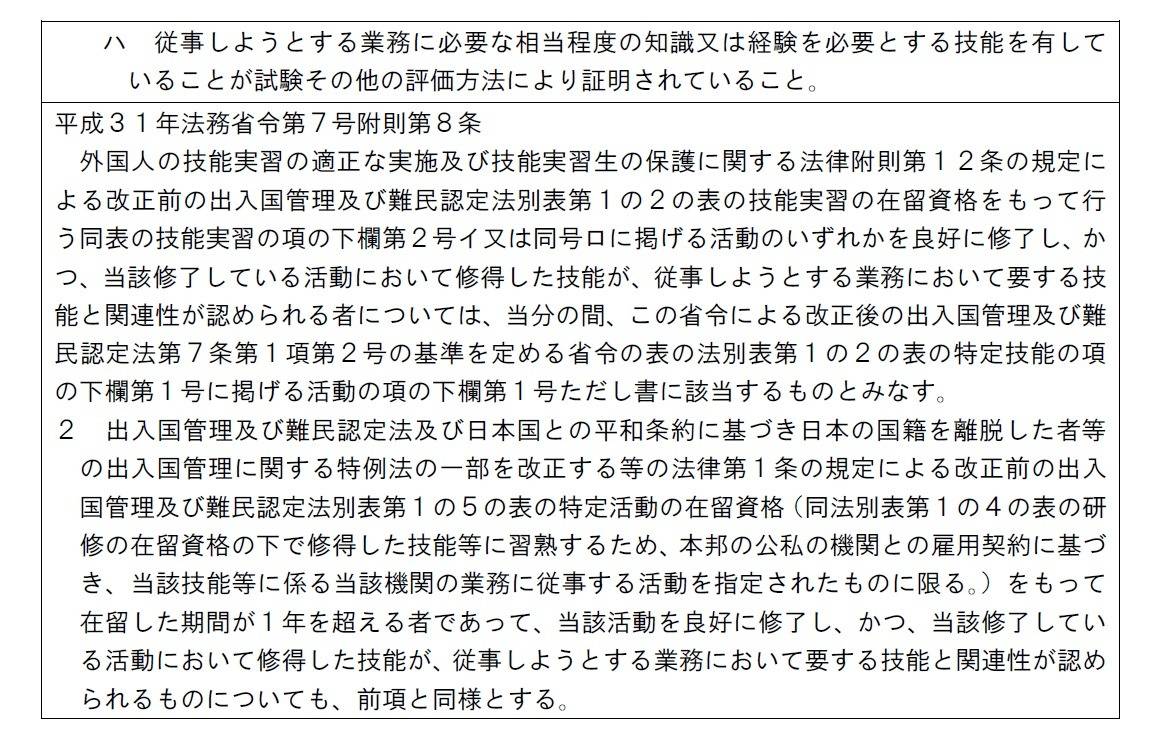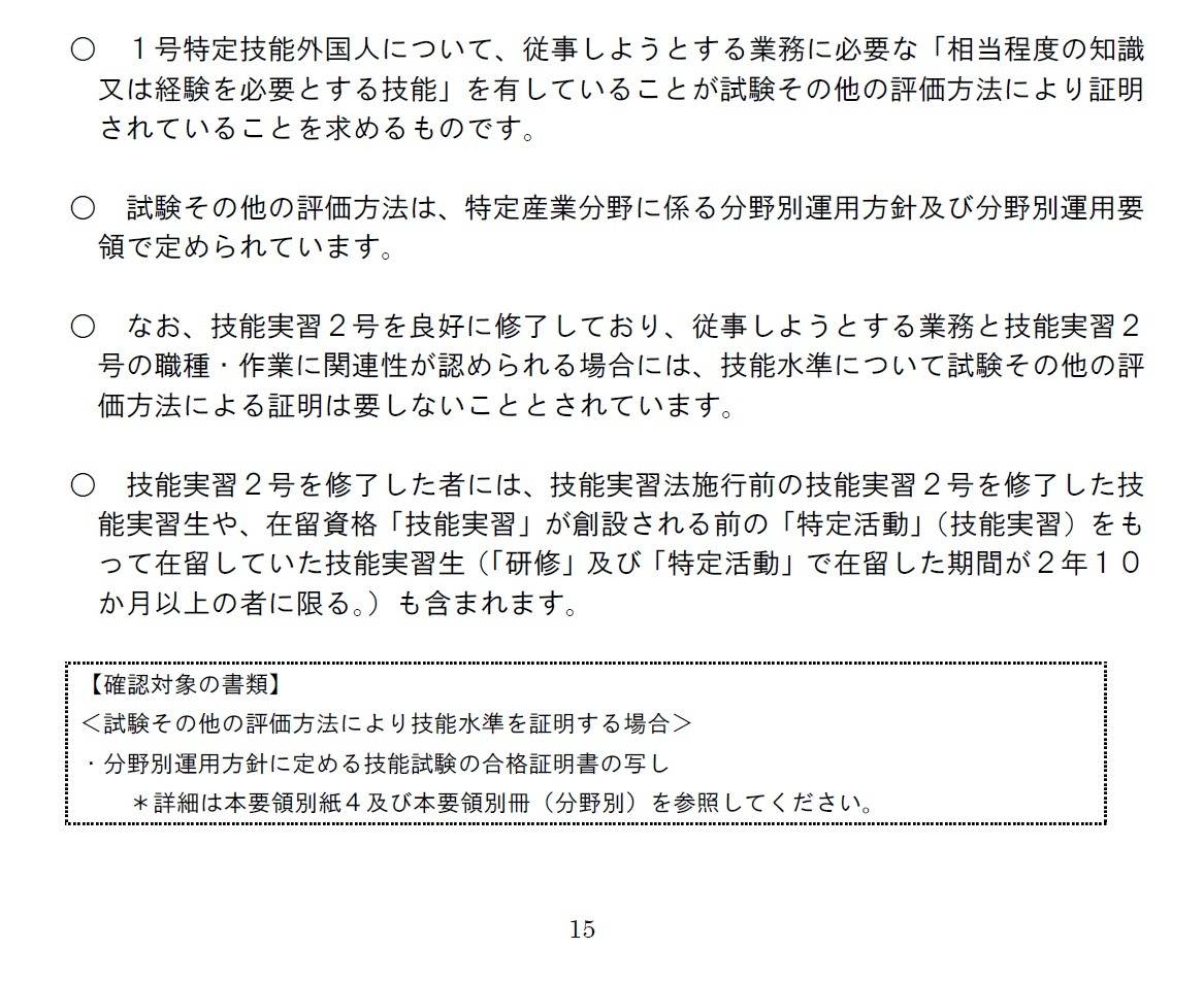 特定技能外国人の基準(技能水準) 千代田区の方へ 行政書士葛飾江戸川総合法務事務所